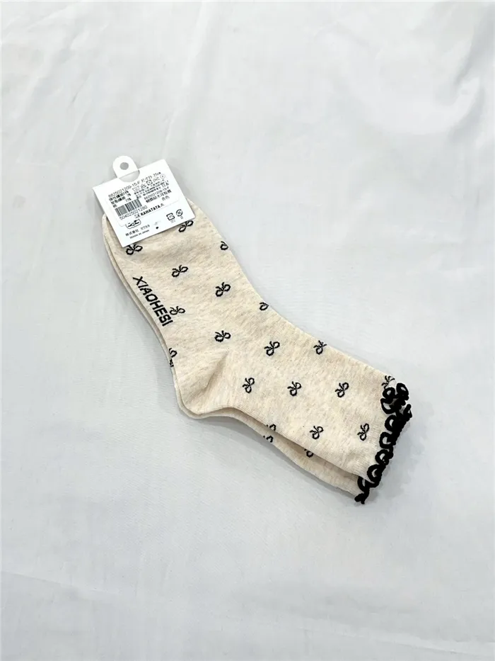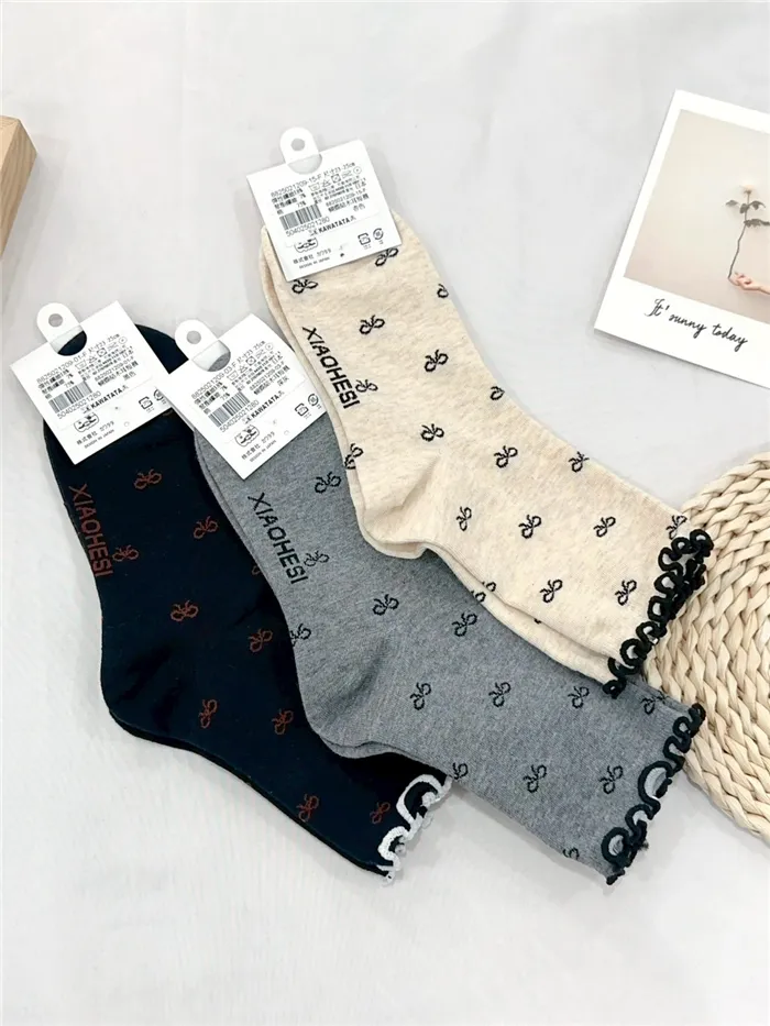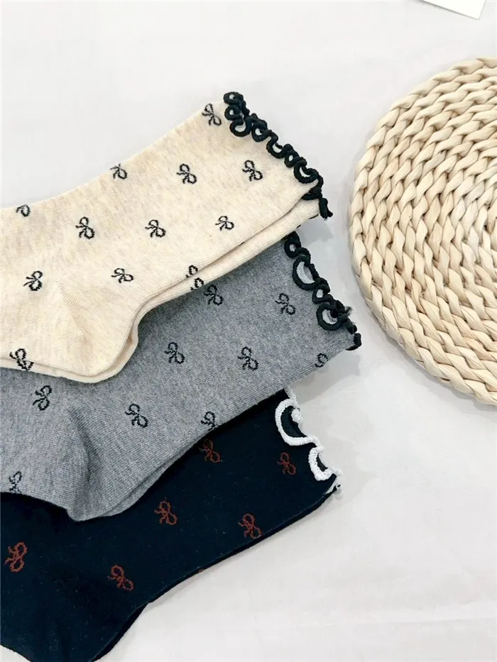 撞色木耳邊蝴蝶結襪-3色