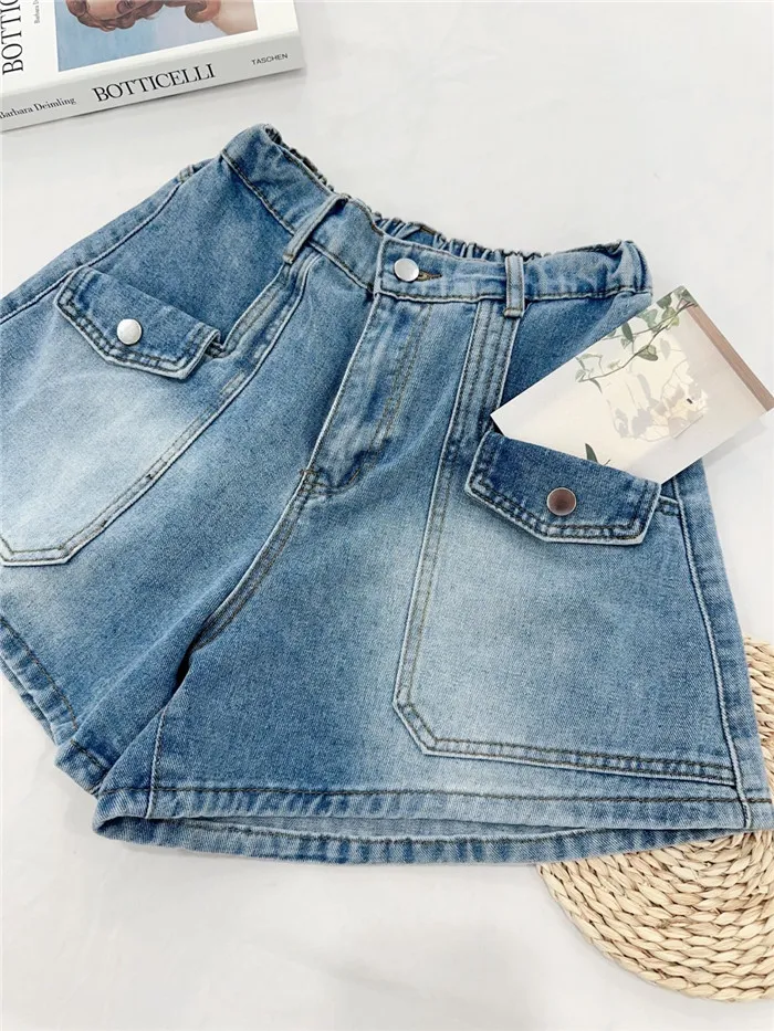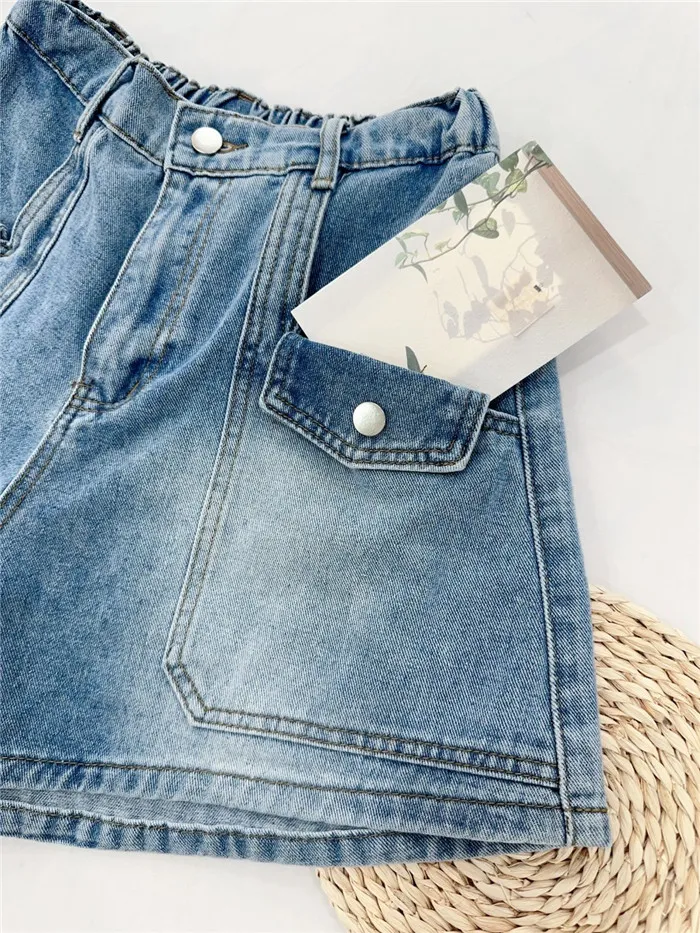 造型大口袋牛仔短褲-1色