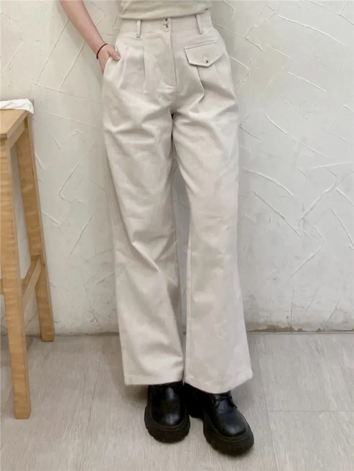雙釦單翻蓋造型長褲-2色
