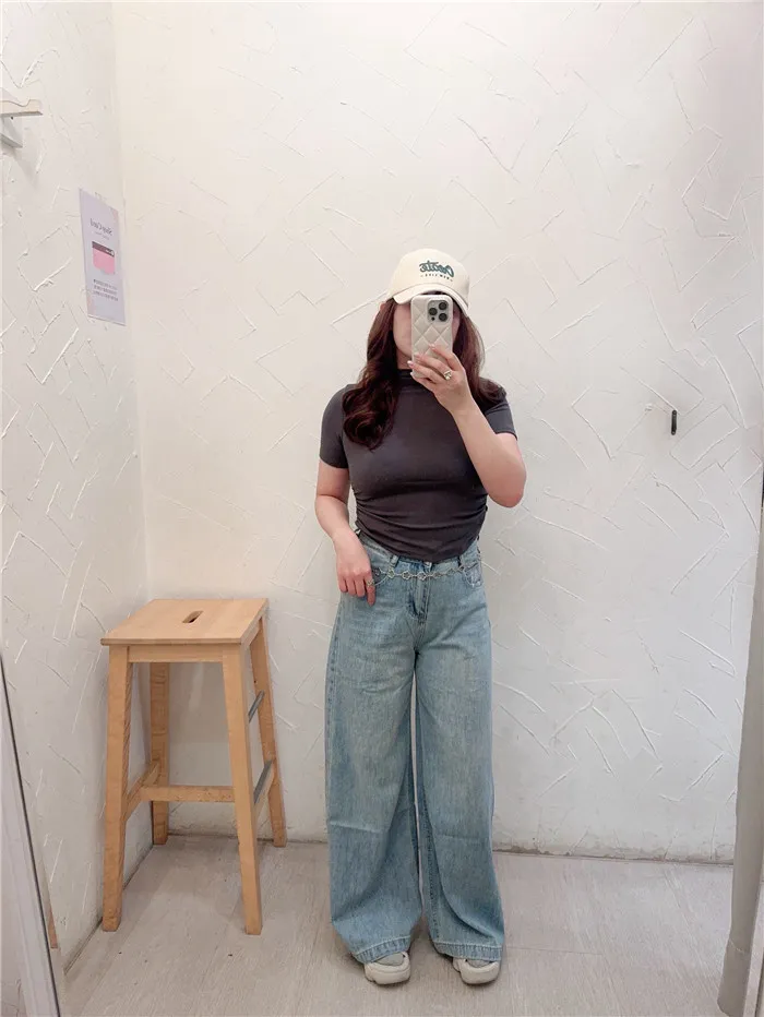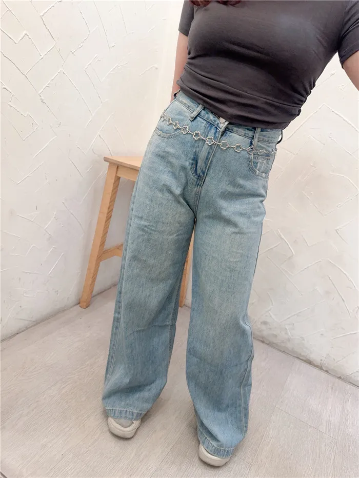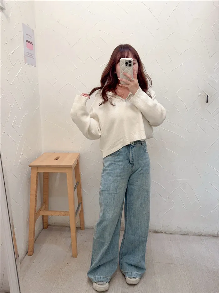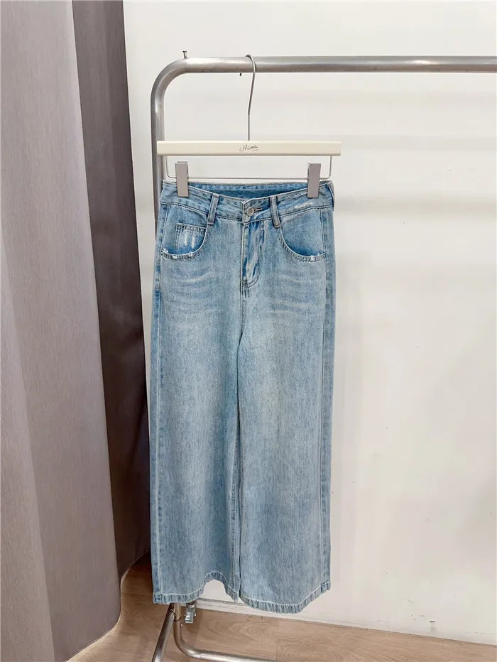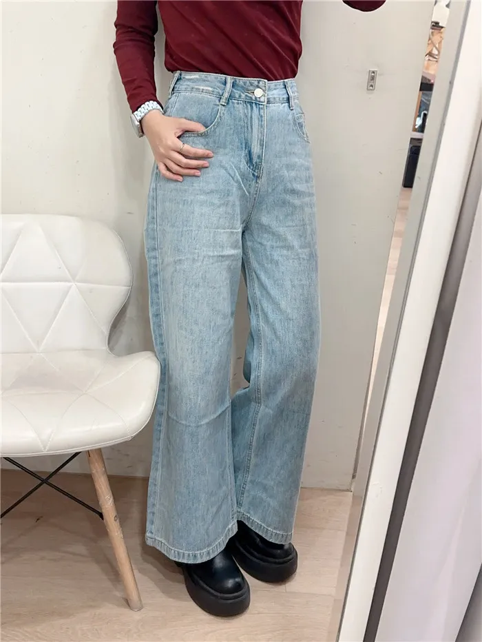刷白A字落地牛仔寬褲-1色