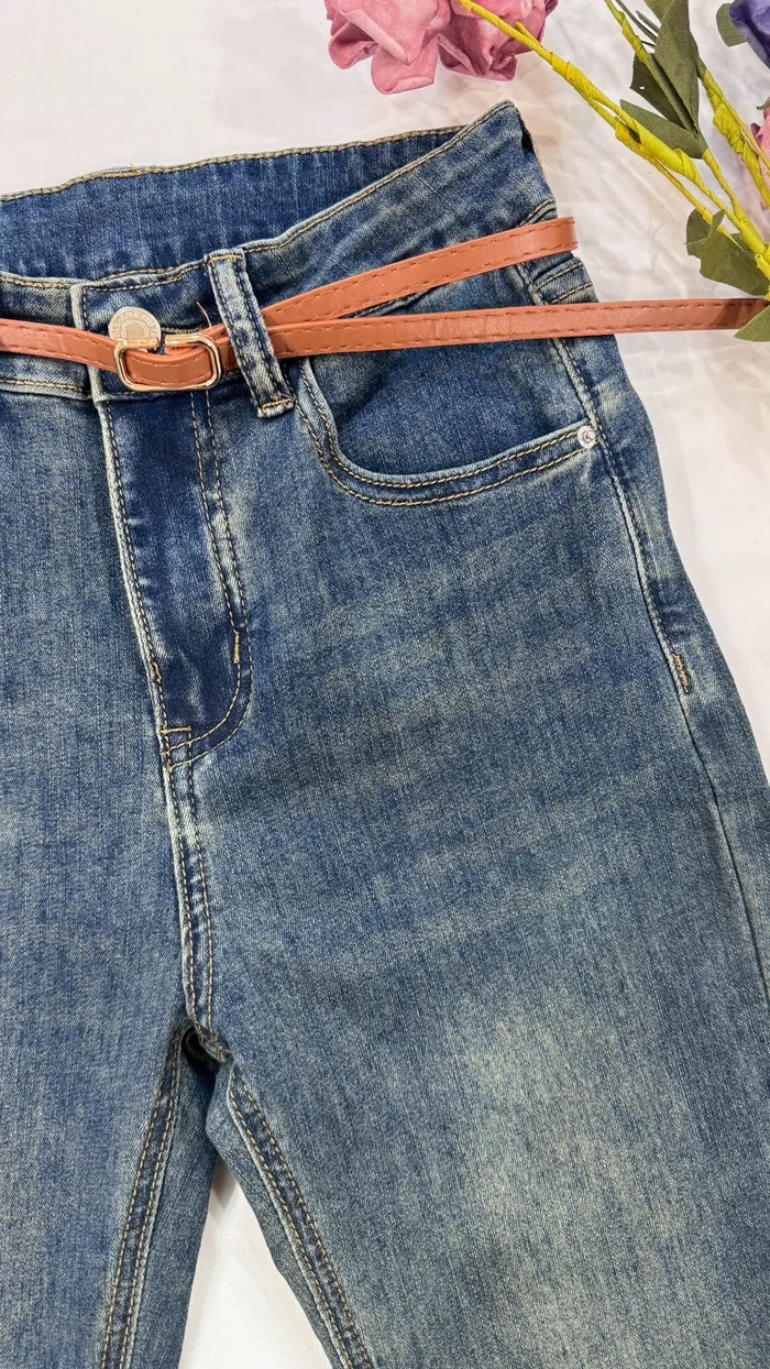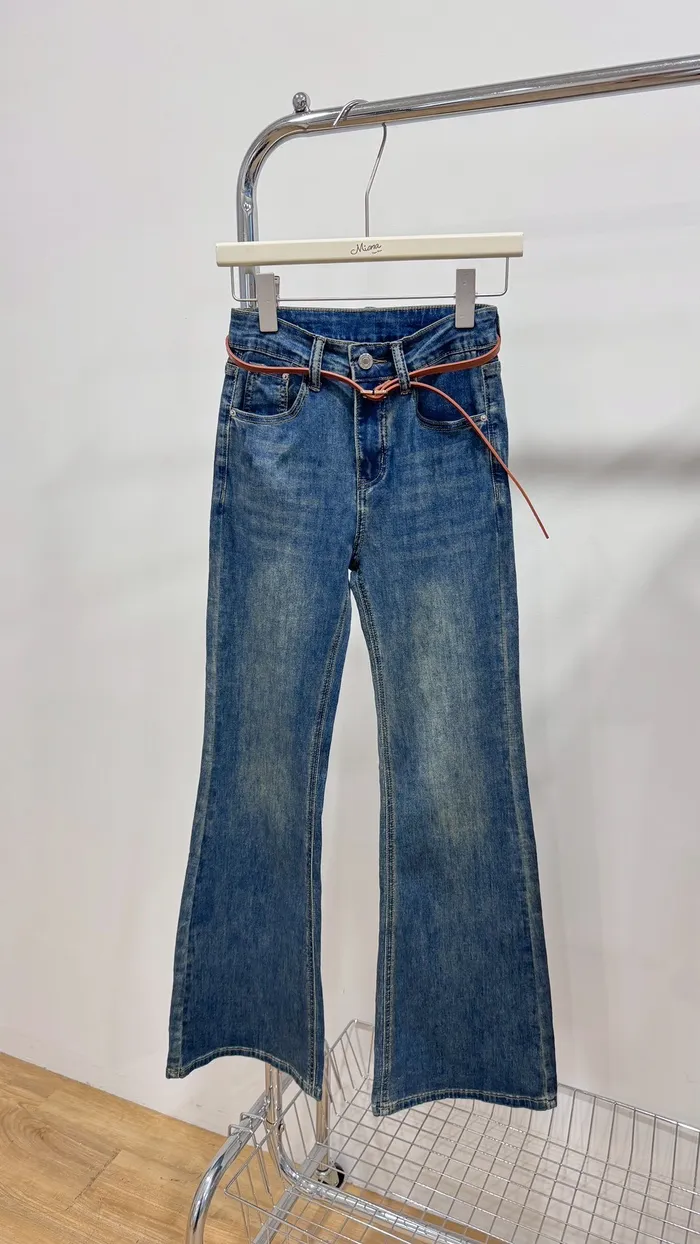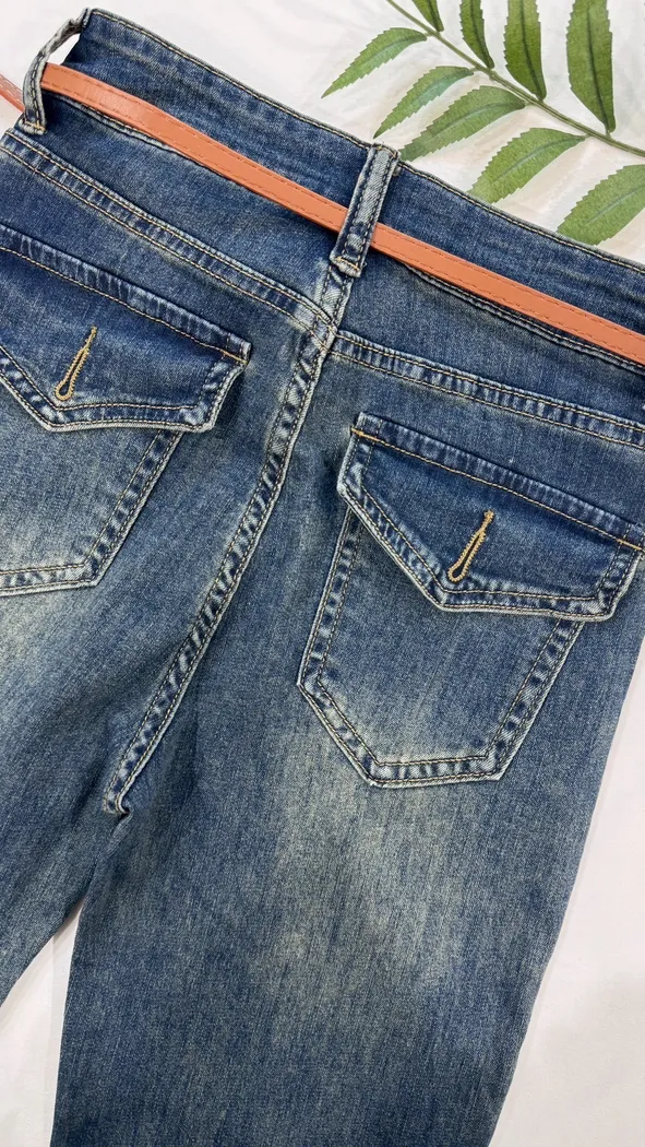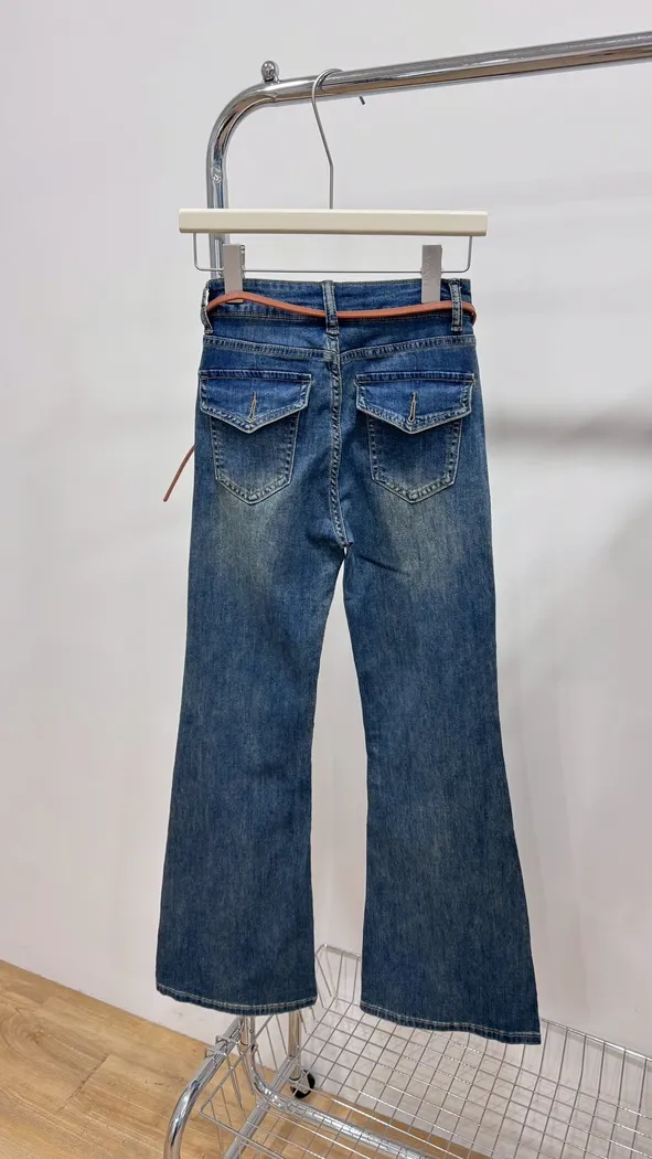 口袋掀蓋附皮帶喇叭褲