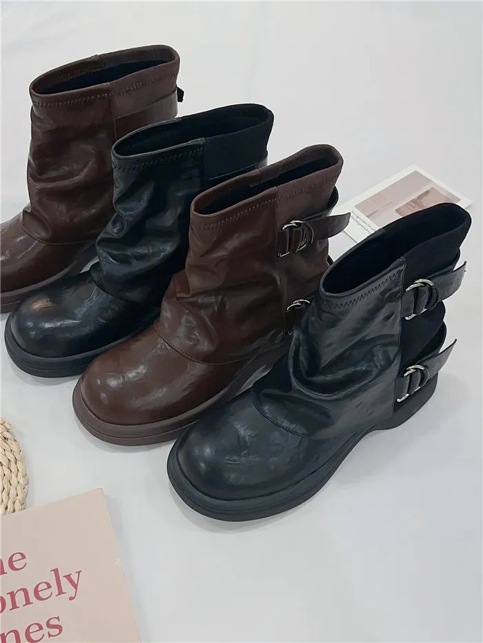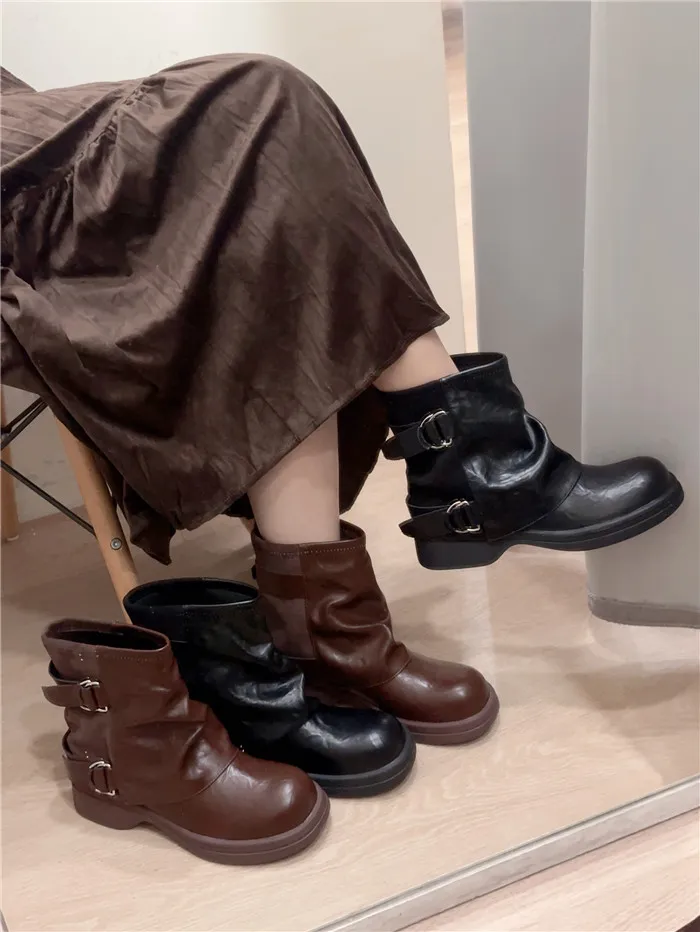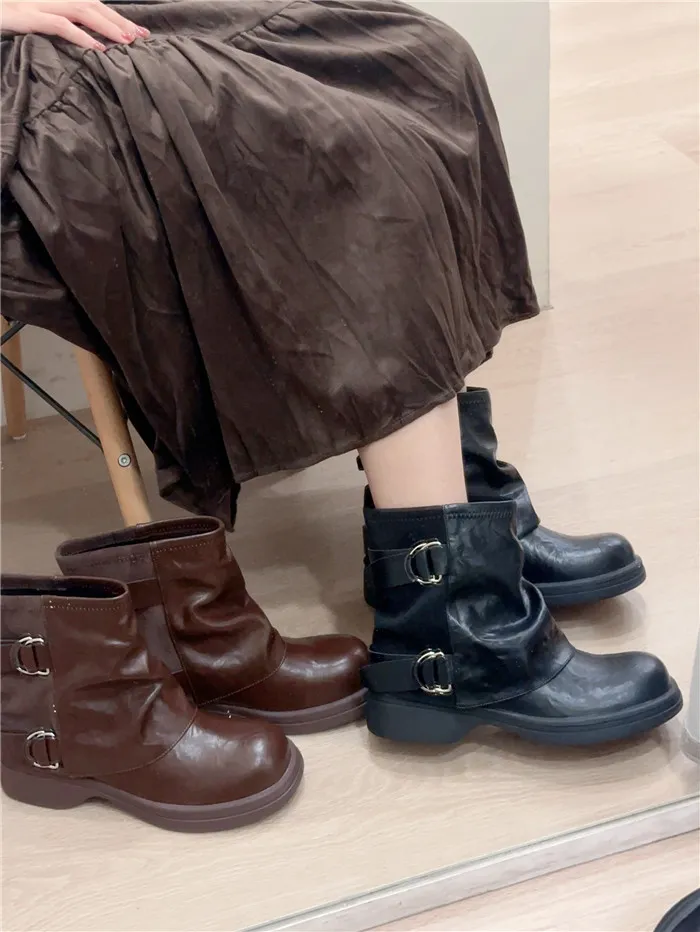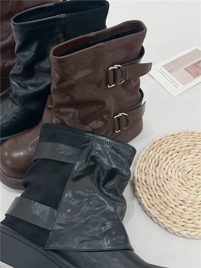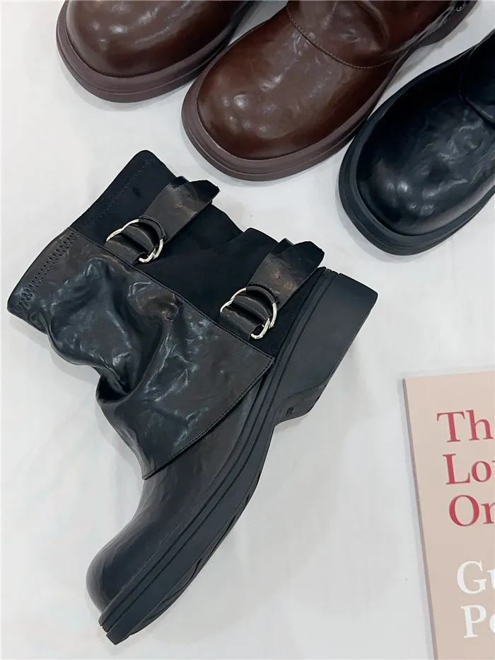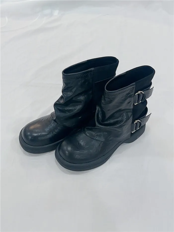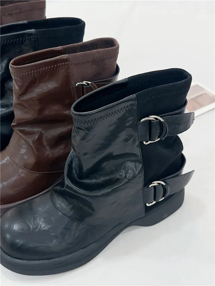 拼接造型短筒褲靴-2色