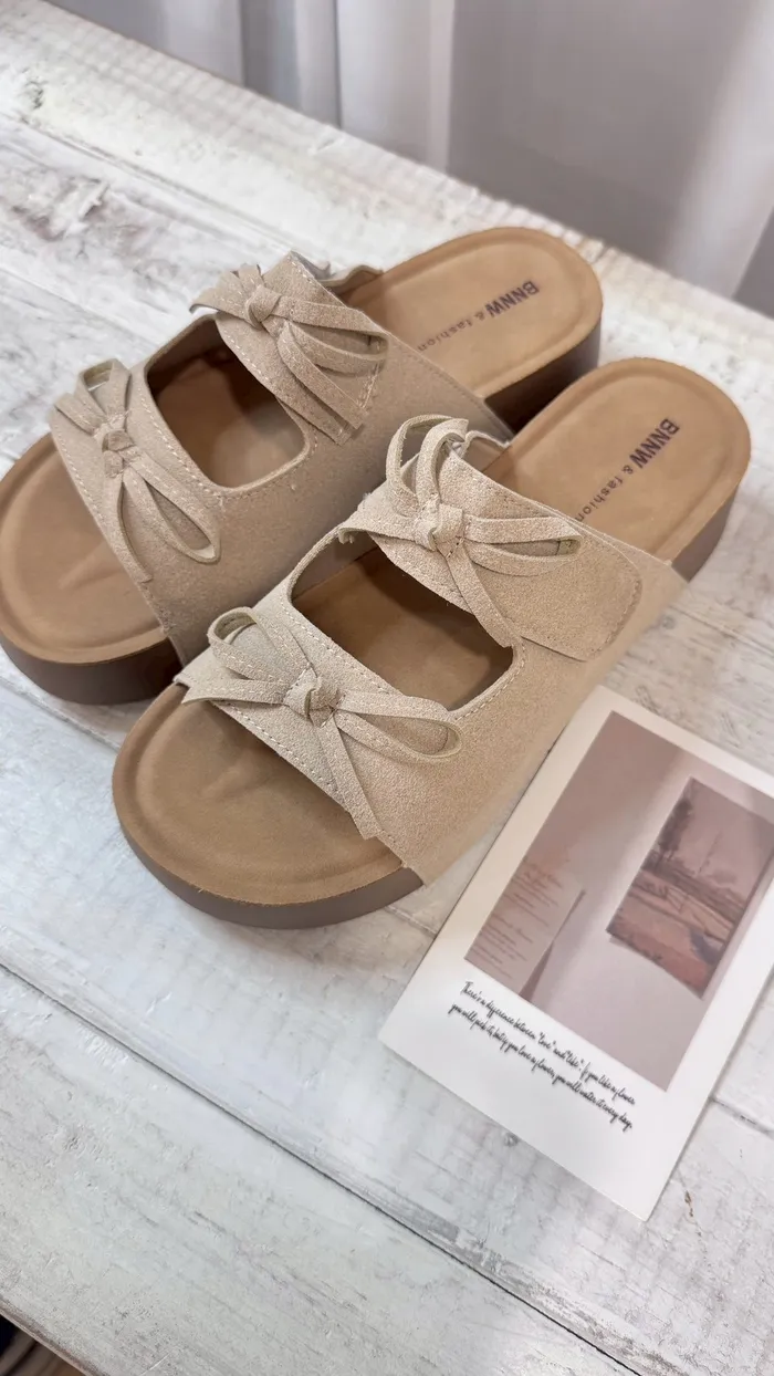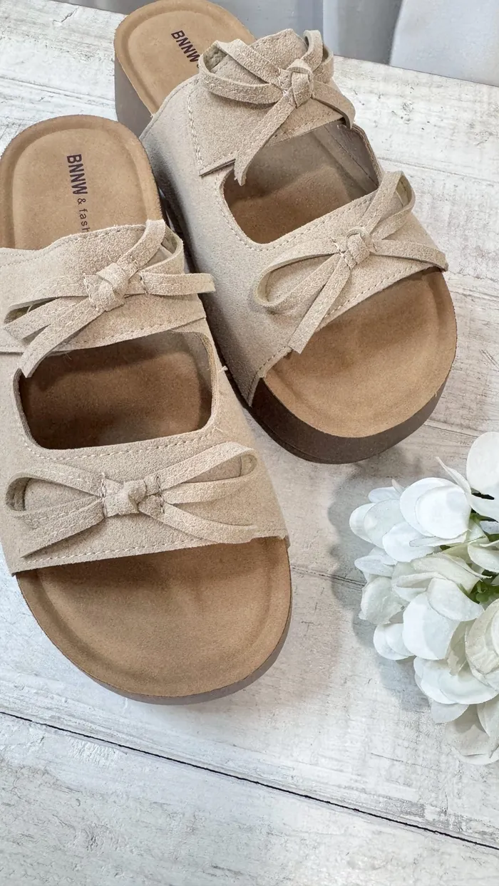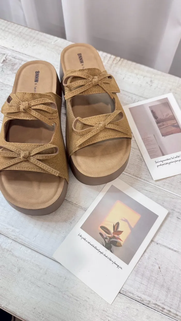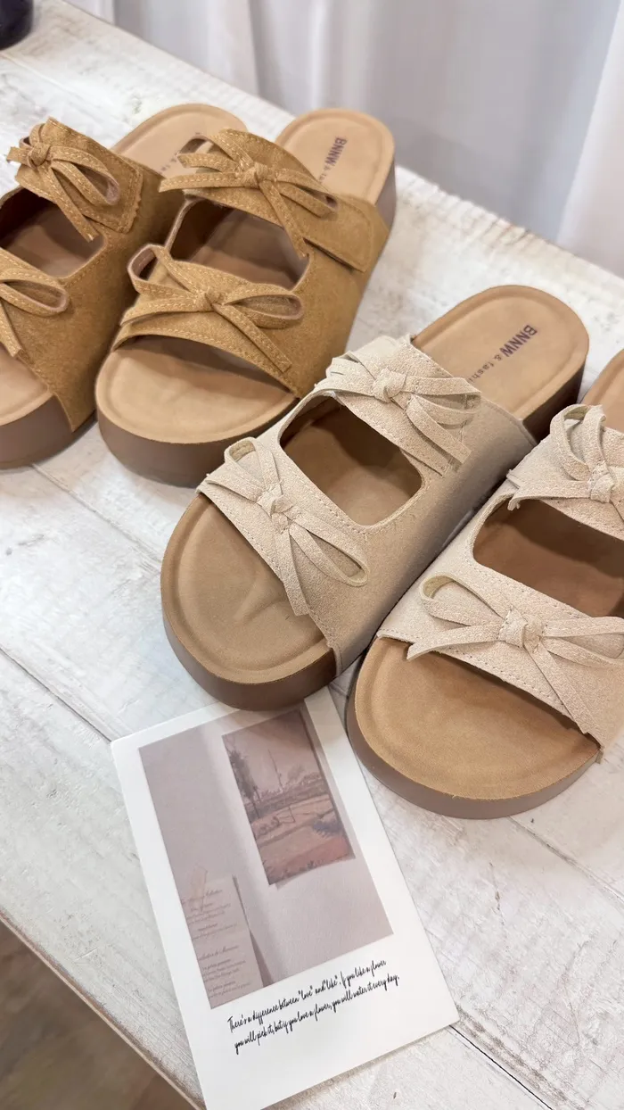 奶油蝴蝶結厚底涼鞋