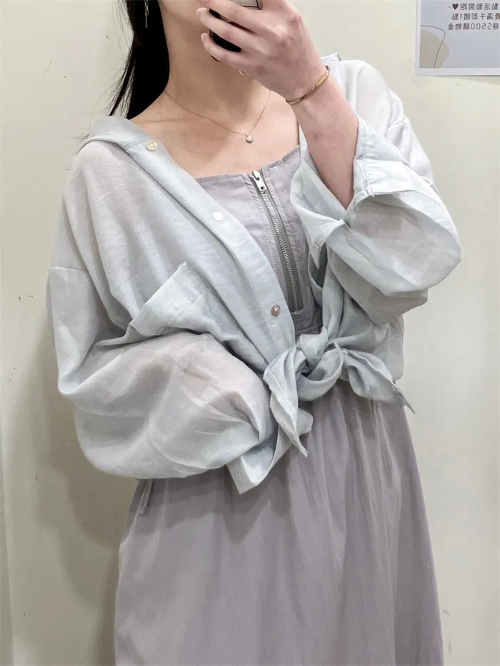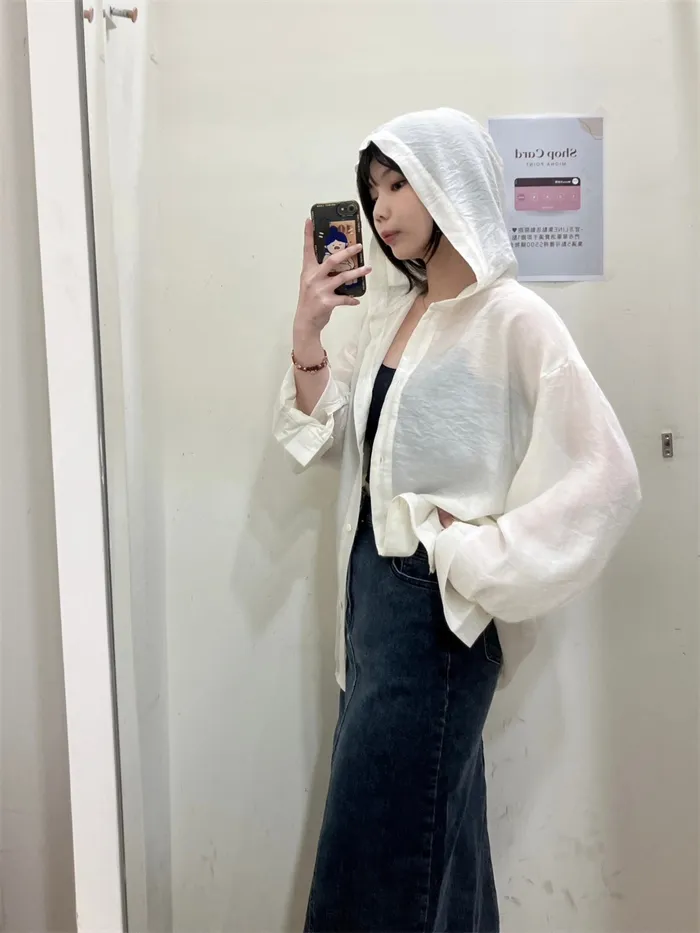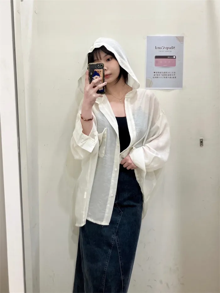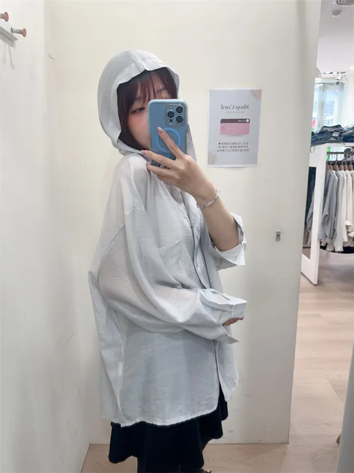 透膚連帽長版罩衫-2色