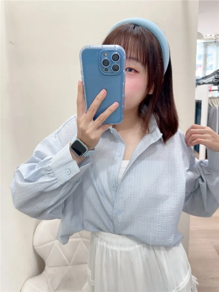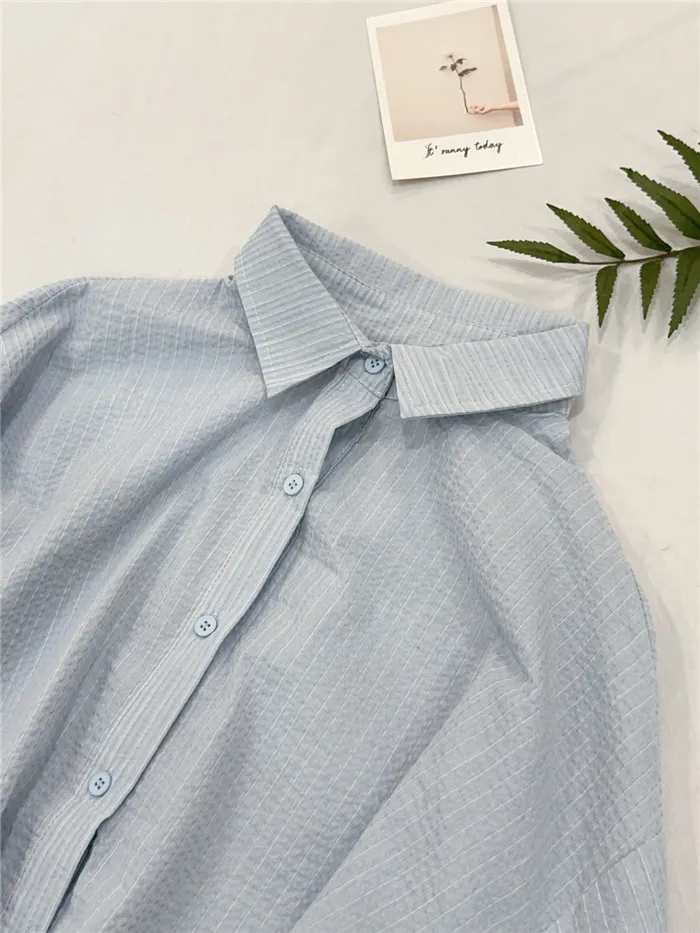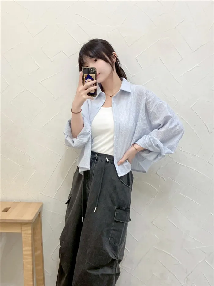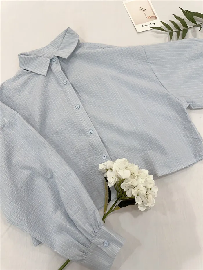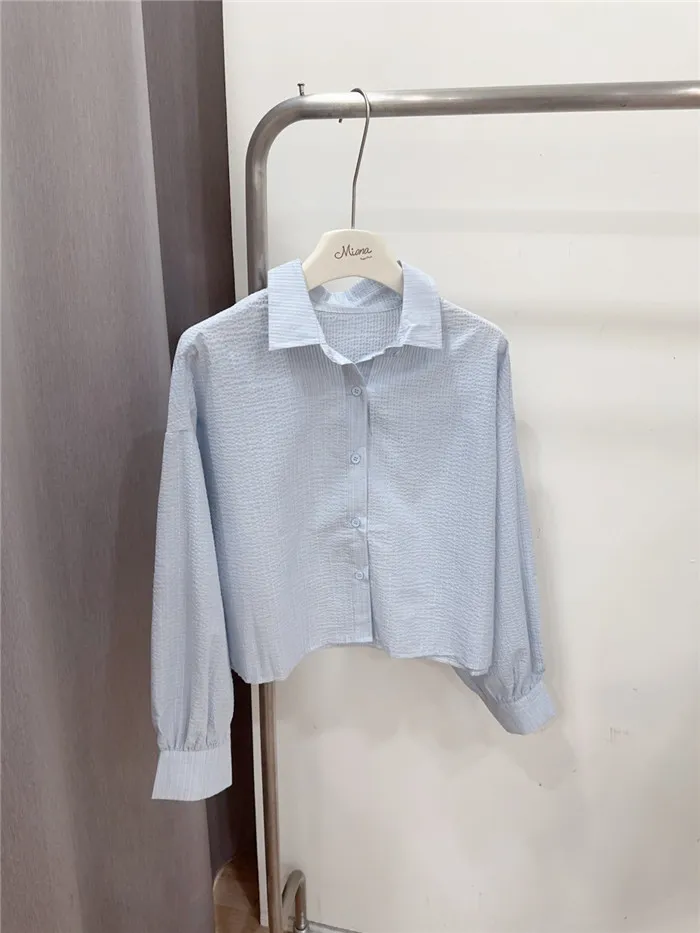 細條立體皺皺短版襯衫-1色