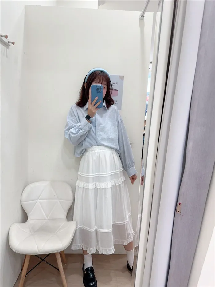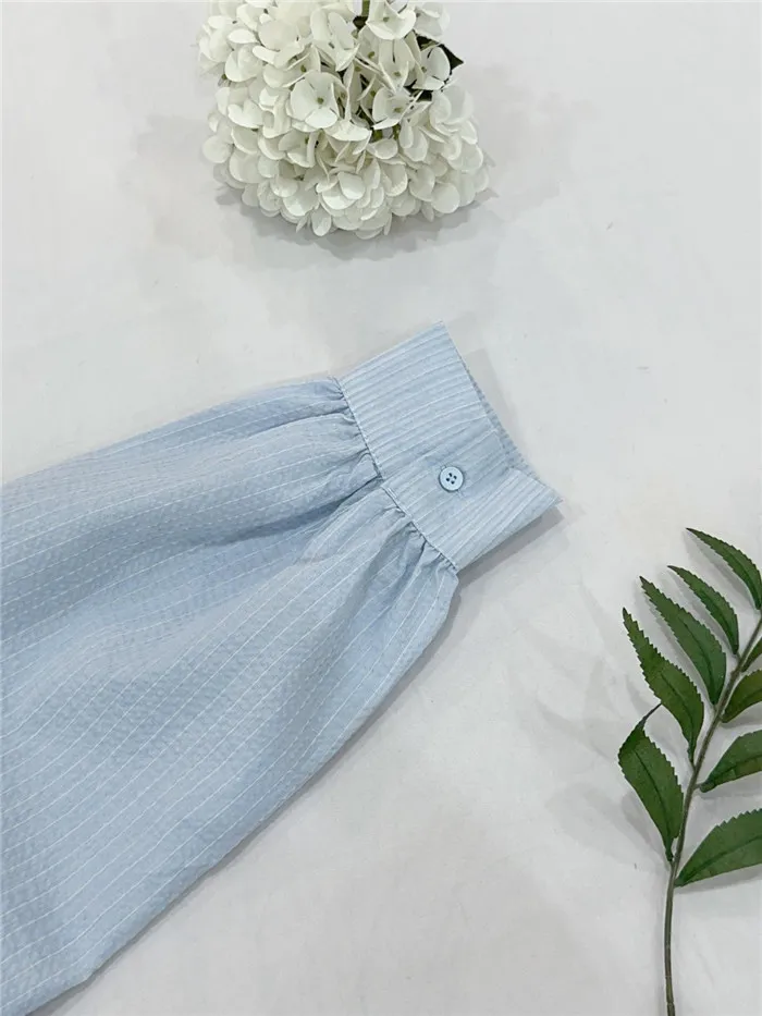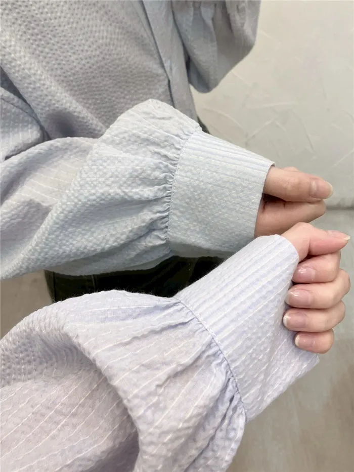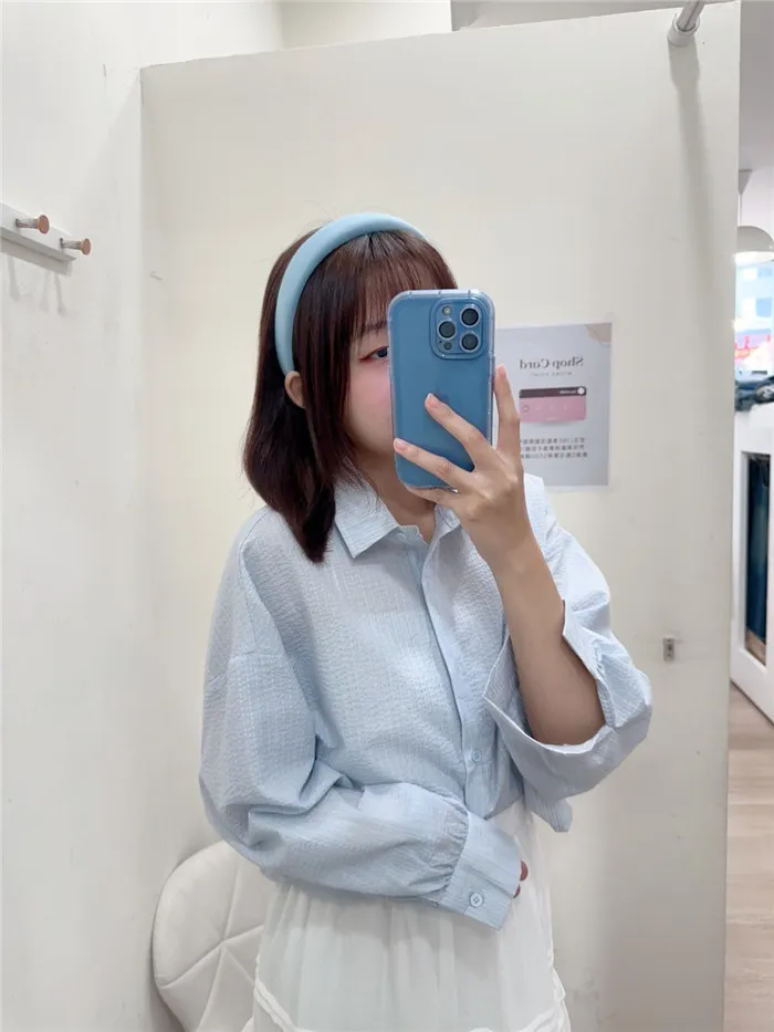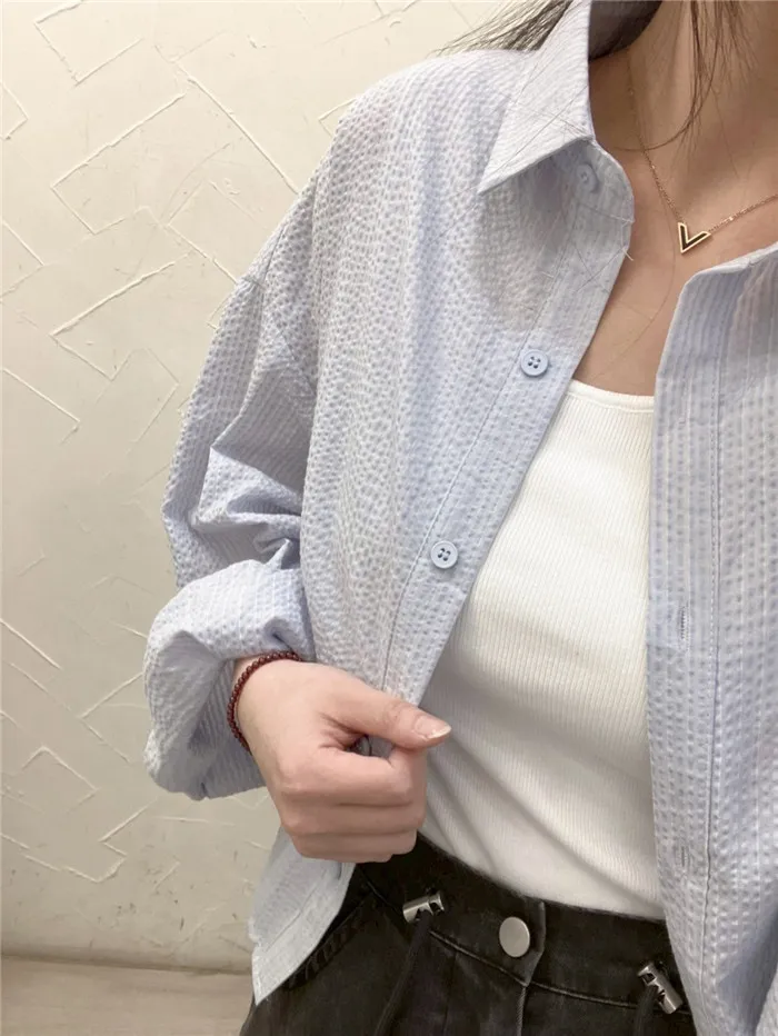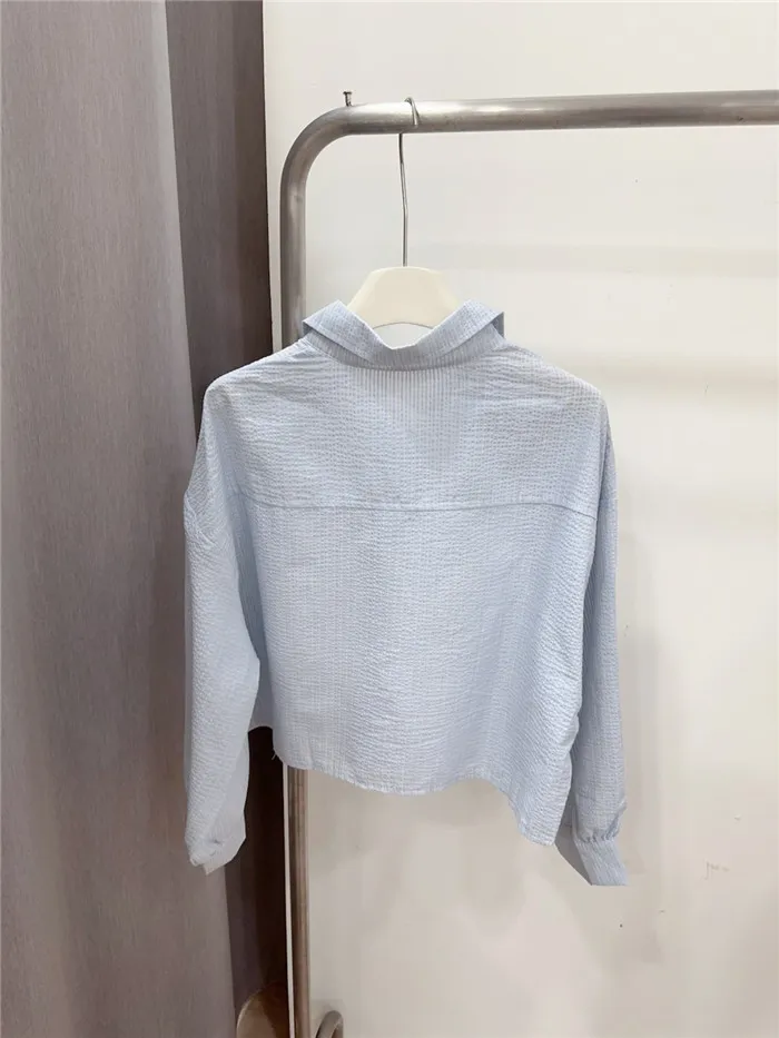 細條立體皺皺短版襯衫-1色