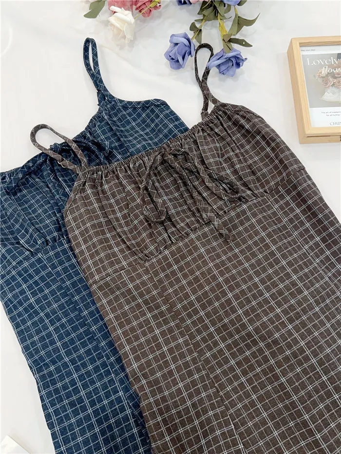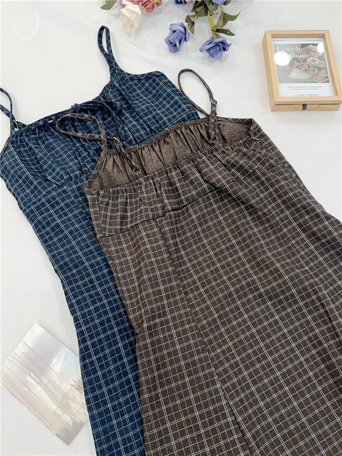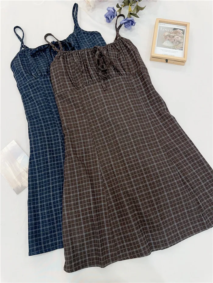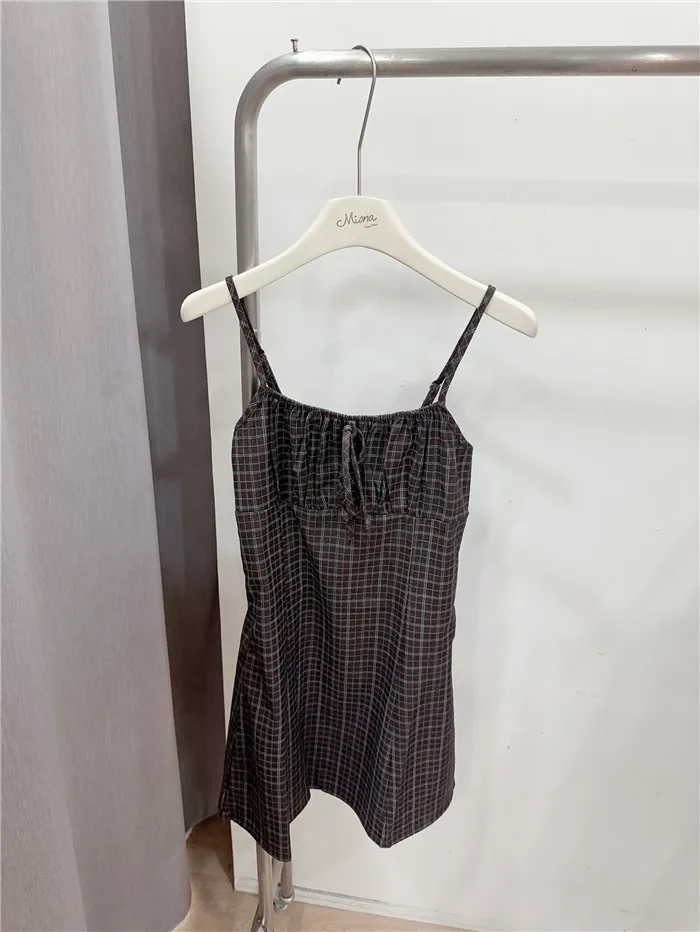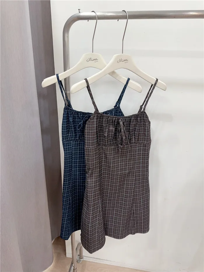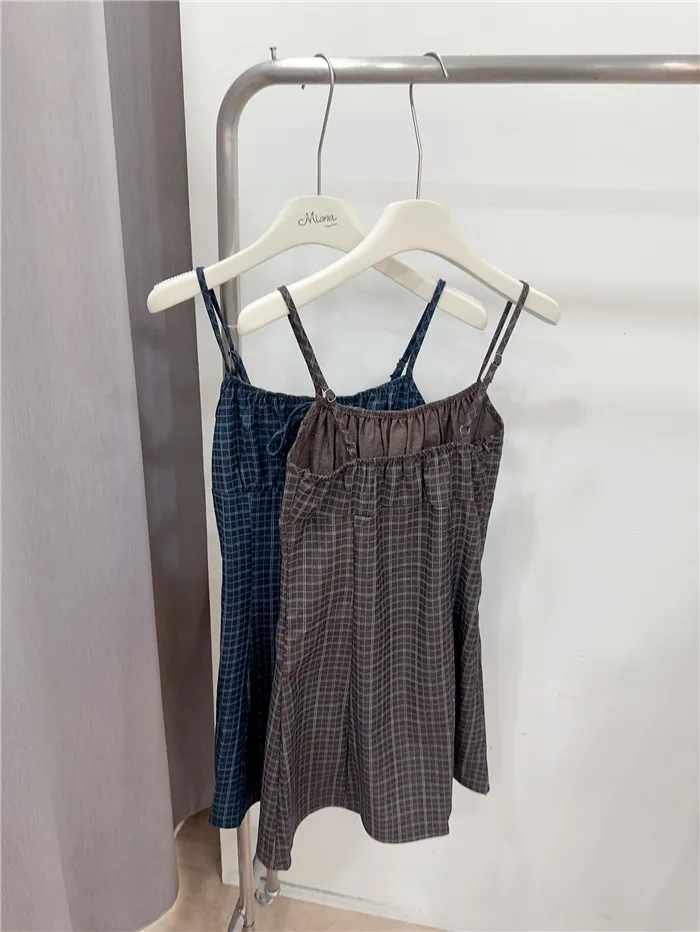 復古格紋細肩短洋-2色