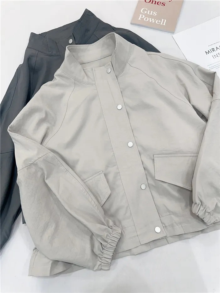 簡約立領下縮口外套-2色