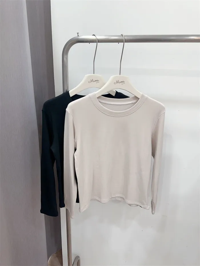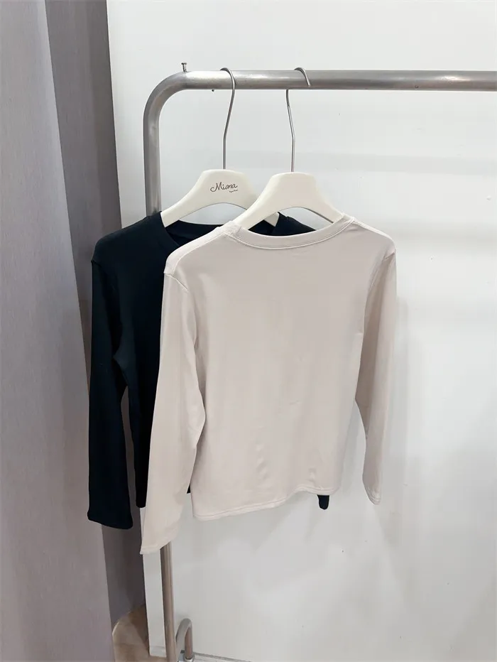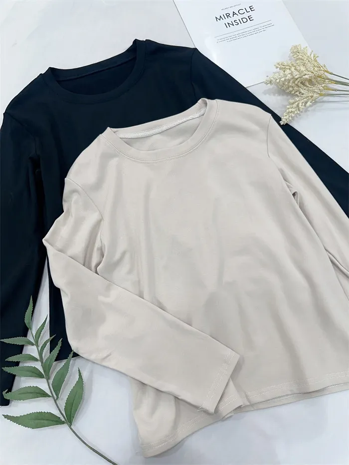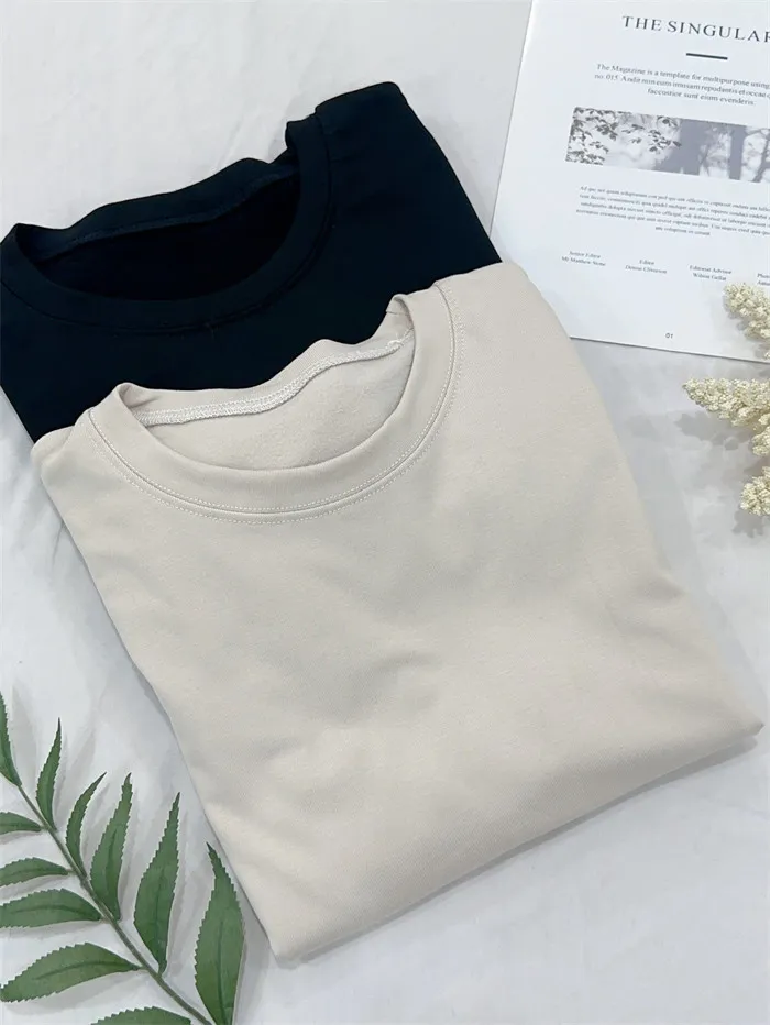 圓領磨毛素薄長袖T-2色