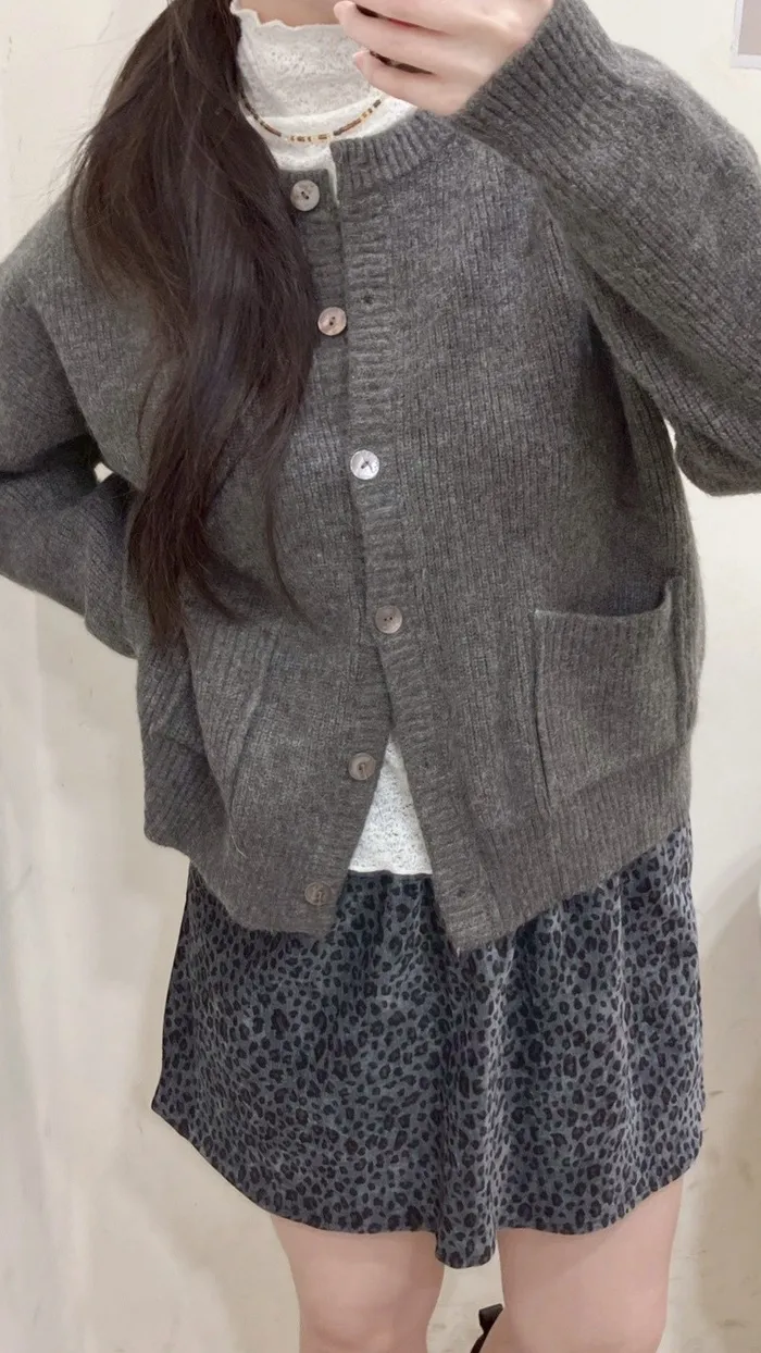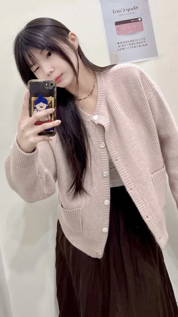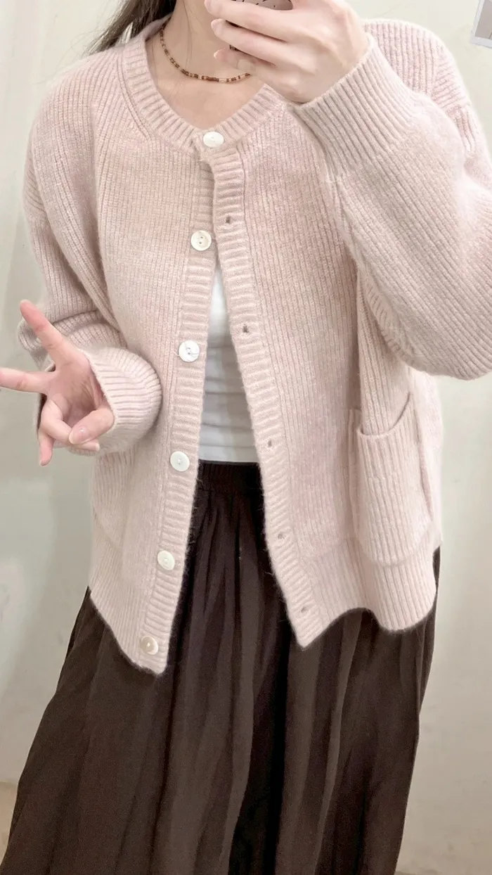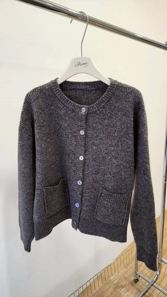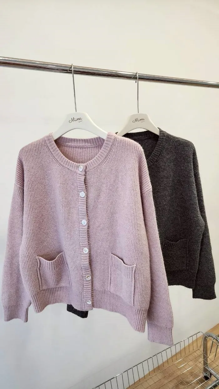 圓領開扣口袋毛衣外套-3色