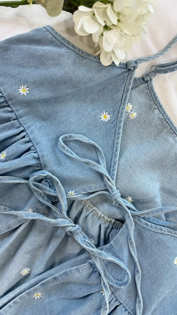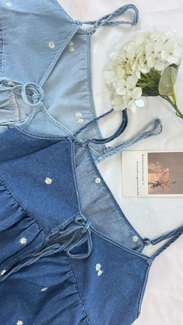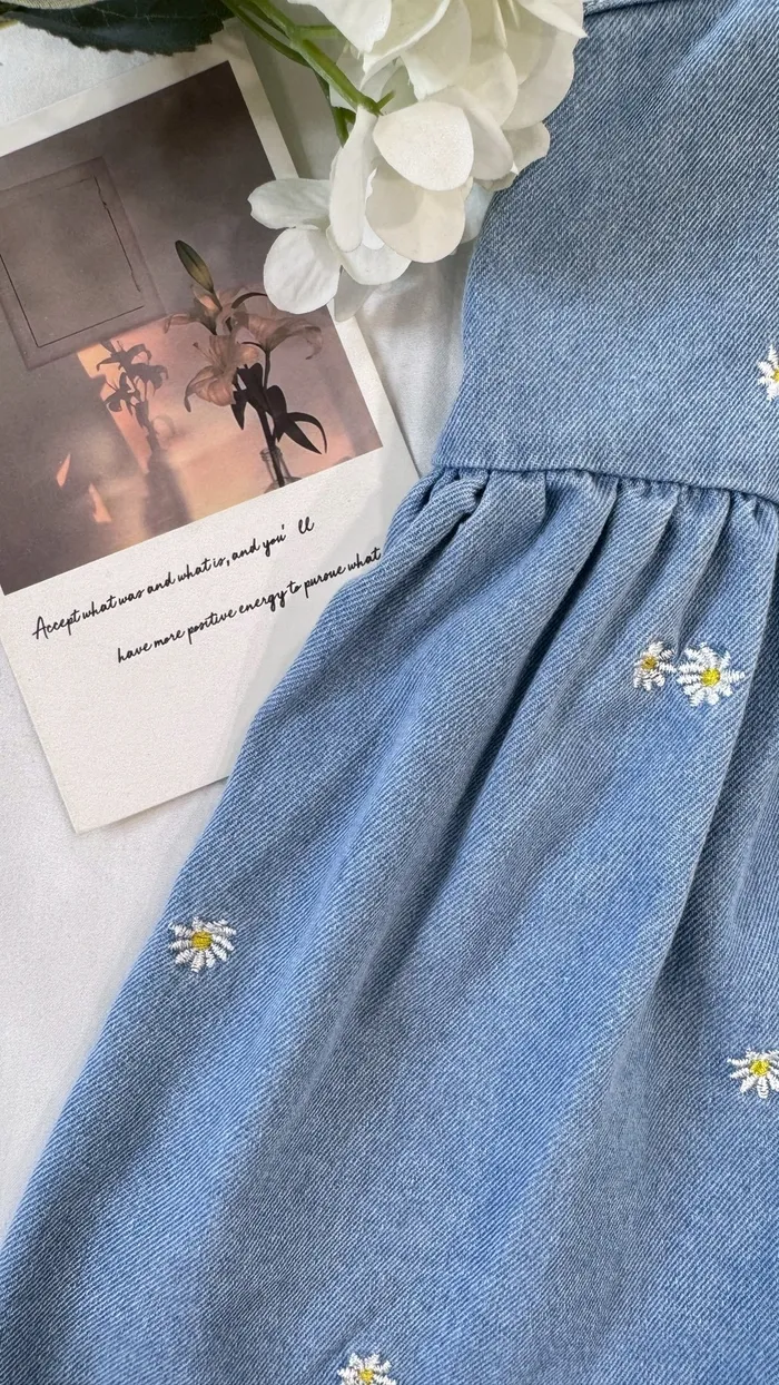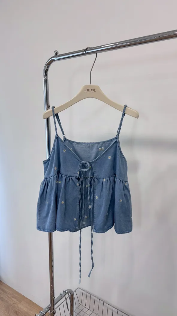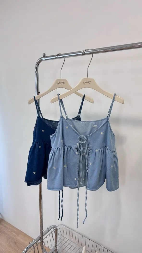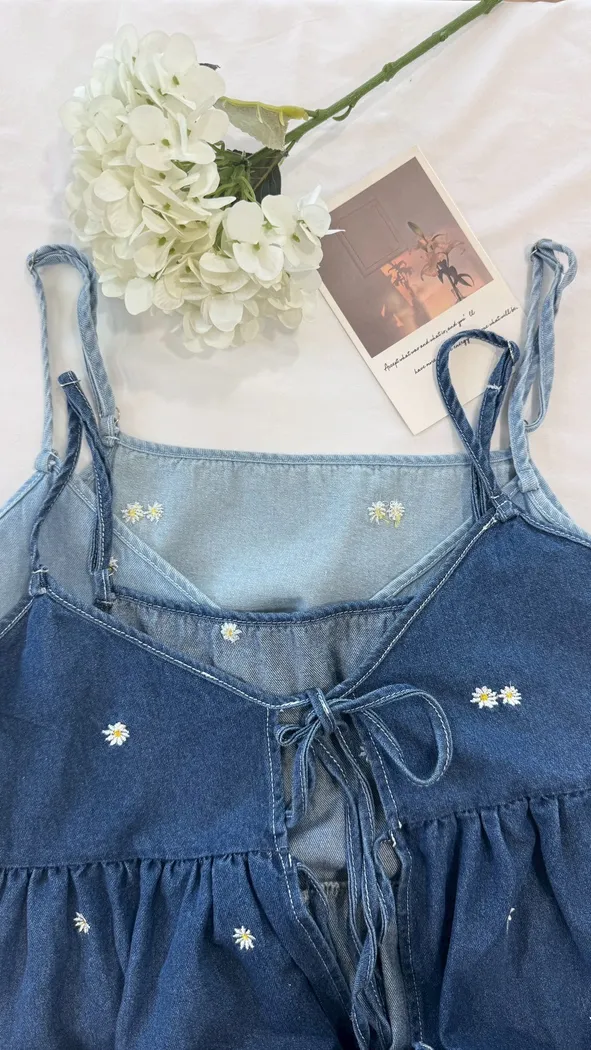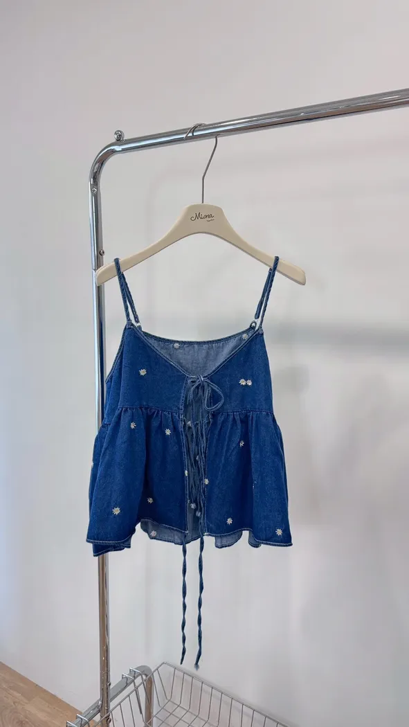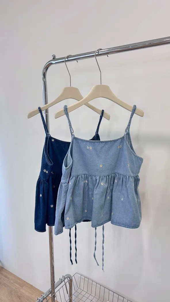 小雛菊刺繡牛仔背心